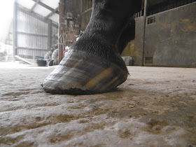 His photos are tricky to make out but you can see that he has already grown quite a bit of new hoof as the old nail holes, which you can see a quarter of the way up his foot in the first photo, are now at ground level. His foot is also changing at the back but the result at the moment is to make it look pretty odd from this angle.